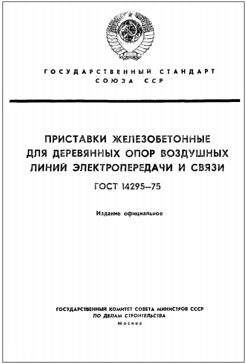 ГОСТ 14295-75. Приставки железобетонные для деревянных опор воздушных линий электропередачи и связи