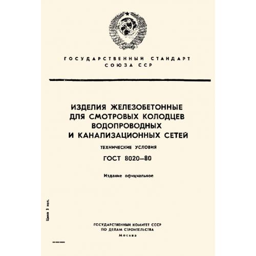 ГОСТ 8020-80. Изделия железобетонные для смотровых колодцев водопроводных и газопроводных сетей.