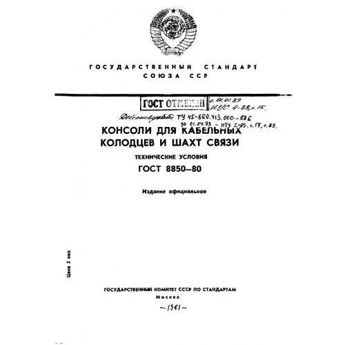 ГОСТ 8850-80. Консоли для кабельных колодцев и шахт связи