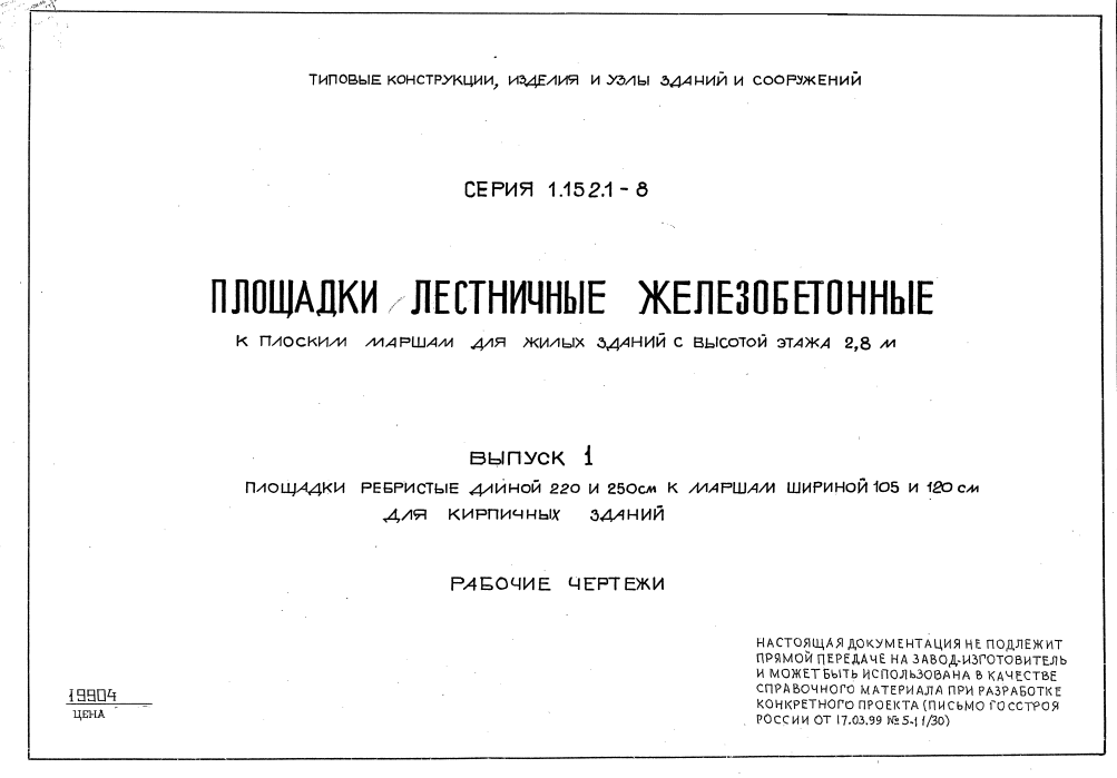 Серия 1.152.1-8. Площадки лестничные железобетонные к плоским маршам для жилых зданий с высотой 2.8 м