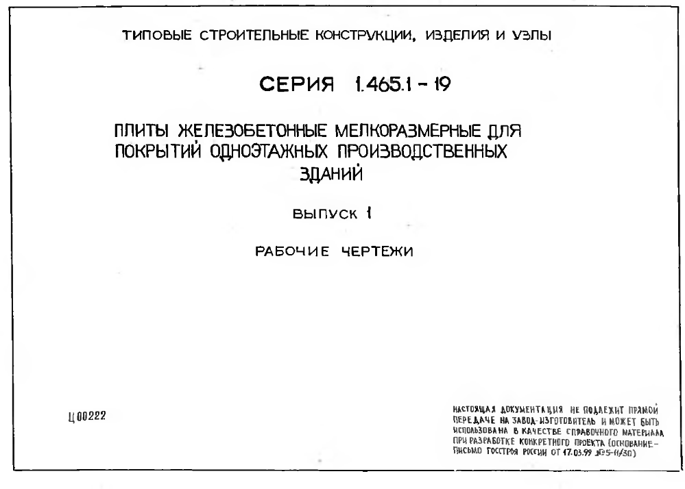 Серия 1.465.1-19. Плиты железобетонные мелкоразмерные для покрытий одноэтажных производственных зданий