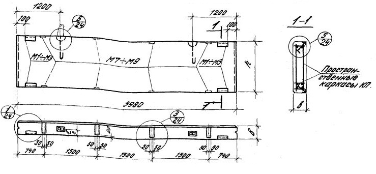 ПС 600.9.30-п-3   Панели-перемычки при простенках длиной 1,5 м.